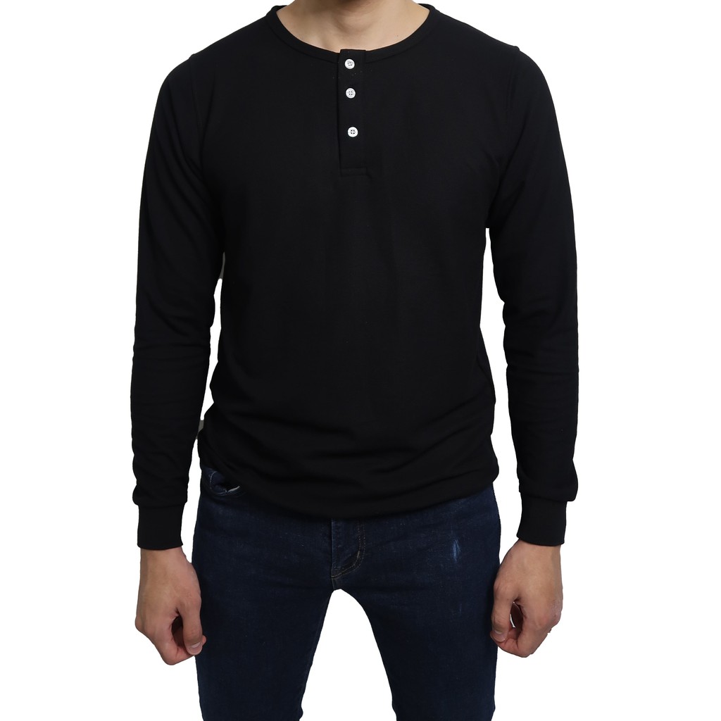 Men Long Sleeve Henley T Shirt Black 男士长袖亨利衫 黑色 Shopee Malaysia
